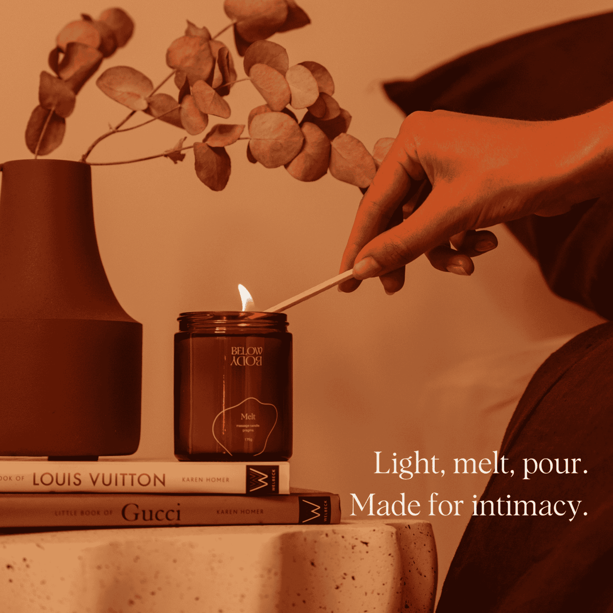 - Melt Intimate Massage Candle: Light it. Let it melt. Pour warm, silky aphrodisiac oil directly onto the skin, for a sensual, slow experience.